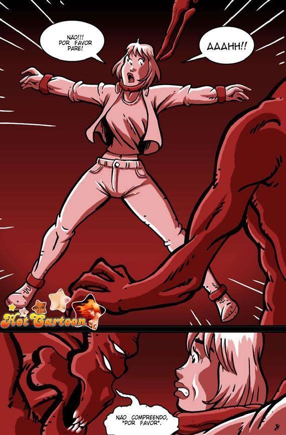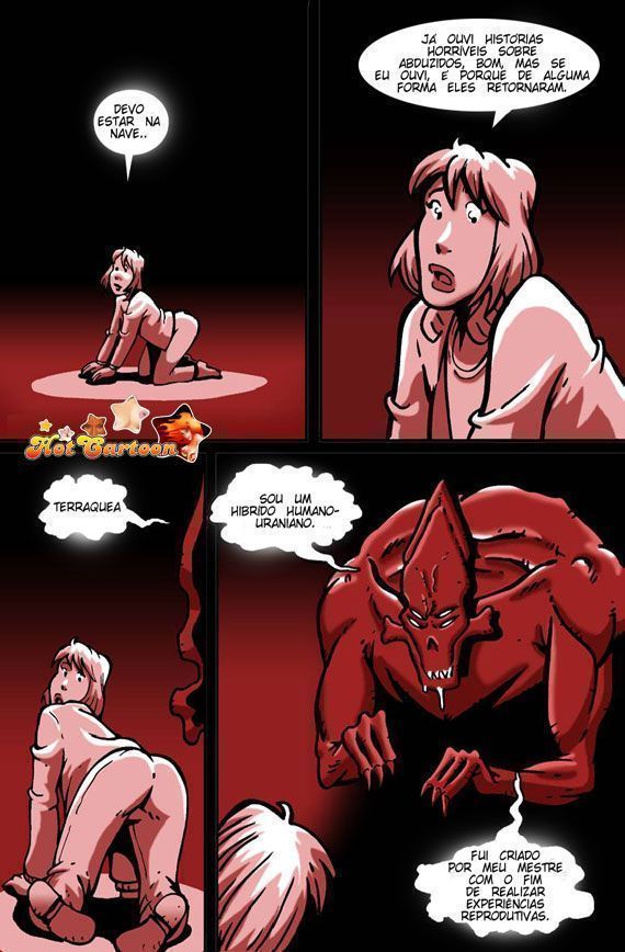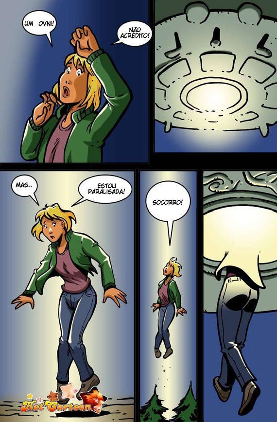 Nessa historia em quadrinhos essa linda jovem e levada por aliens e é totalmente abusada pro eles. Então os aliens sedentos por sexo resolvem fazer de tudo um pouco com a jovem moça. Com os tentaculos enormes os aliens penetram gostoso a bucetinha, cuzinho e jorram porra por todo o corpo da jovem moça.