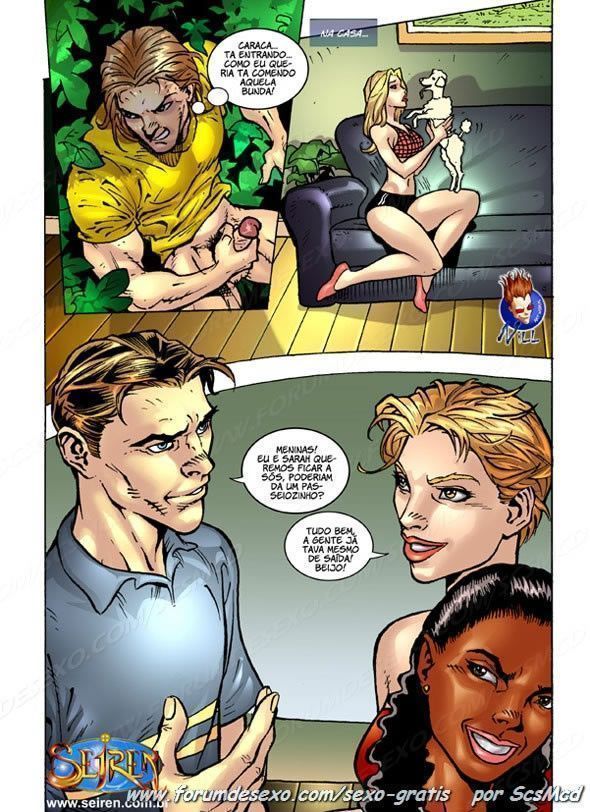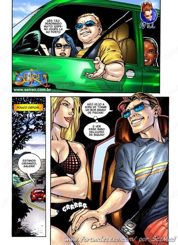 Dois irmãos levam algumas amigas para seu sitio. Então chegando no local eles se aproveitam das gatas deliciosas e fazem um orgia inesquecivel. Então ate o filho dos caseiros se aproveita da situação e come uma bucetinha nessa historia em quadrinhos deliciosa da seiren