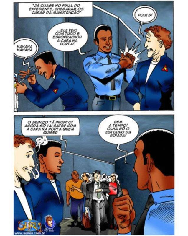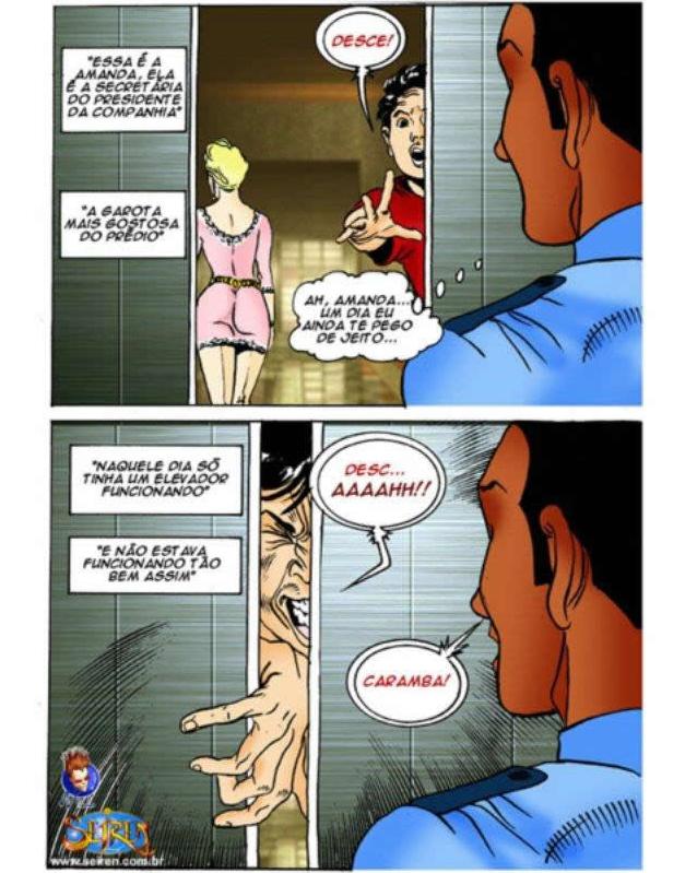 Quadrinho erótico classico com muito sexo e sacanagem pra ninguem botar defeito. A historia se passa em uma empresa aonde o elevador quebra. Então o funcionario do elevador fica preso com uma deliciosa mulher e uma outra funcionaria. Eles ficam preso ate o dia seguinte e o que se passa ali são cenas de sexo e muita depravação. O jovem funciona se da bem e come as duas moças que se aproveitam da situação
