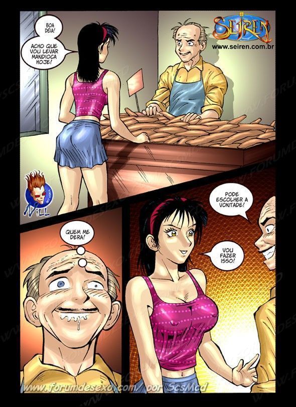 Arlete ve sr. oscar batendo uma punheta na vendinha e adora aquilo. Ela então entra de surpresa e resolve apreciar a situação aonde sr. oscar esconde seu penis no meio das mandiocas. Então arlete cheia de tesão tira o atraso do velho oscar dando gostoso pra ele a ponto deo velho ate fechar a vendinha por alguns minutos. Arlete da gostoso sua buceta e cuzinho e ao voltar pra casa seu marido pergunta aonde estão as mandiocas que ela foi comprar