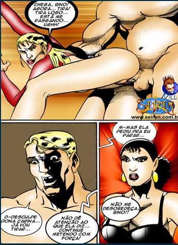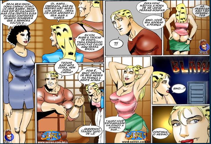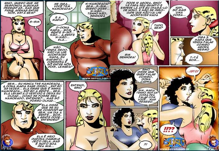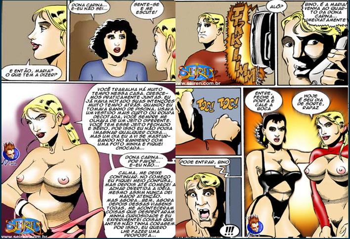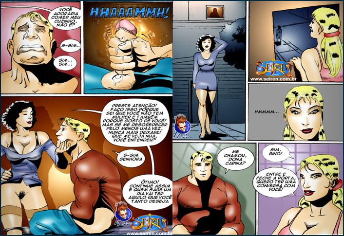 Quadrinho erótico delicioso da seiren contando a historia da dona carina que deixa seus empregados fuderem com ela